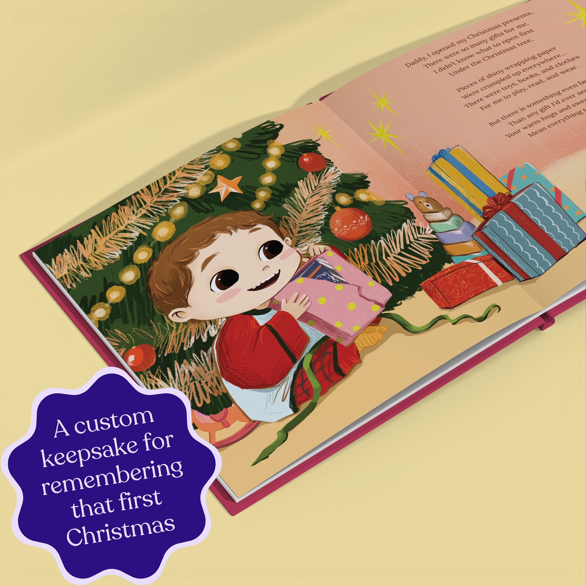 There’s nothing quite like your very first Christmas as a family. Every twinkling light feels a little brighter, every carol a little sweeter, and every cuddle a little warmer. This personalized keepsake captures that once-in-a-lifetime magic. The wonder of seeing Christmas through your child’s eyes.