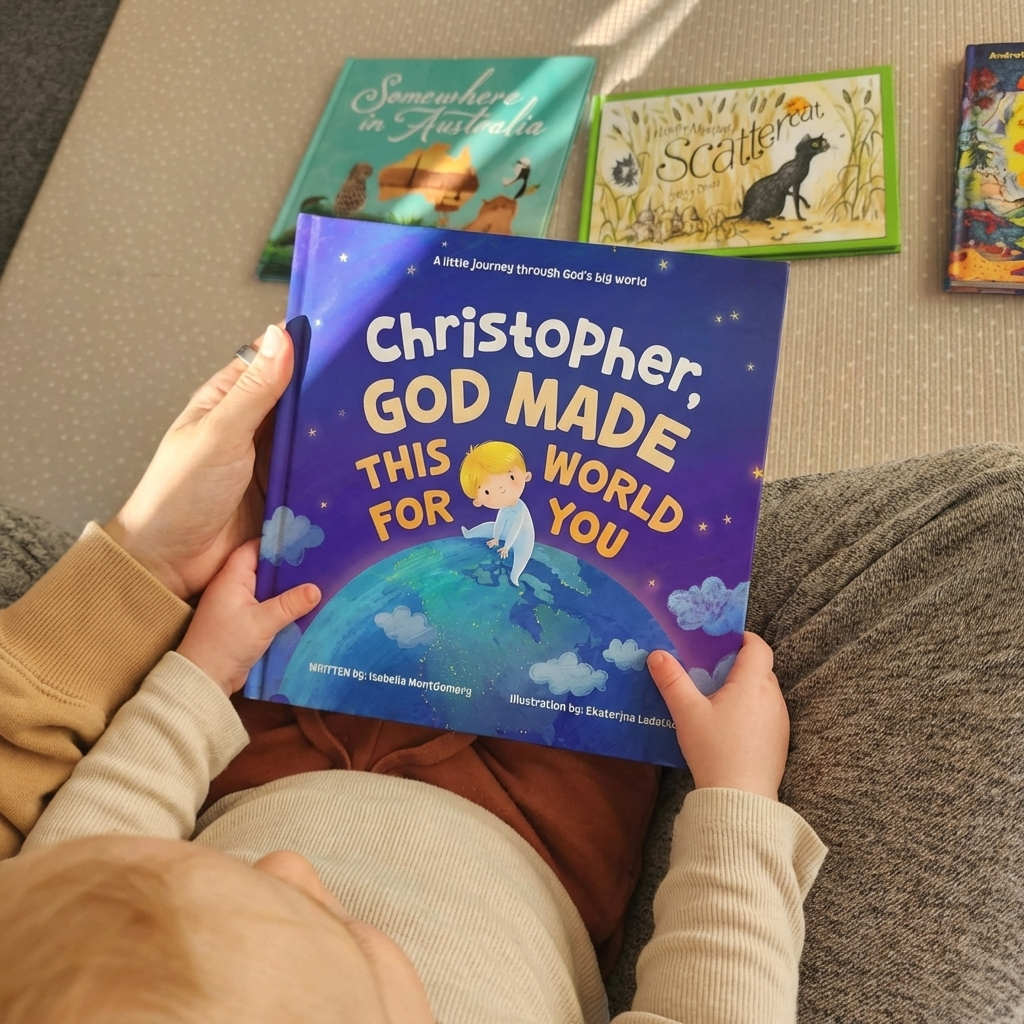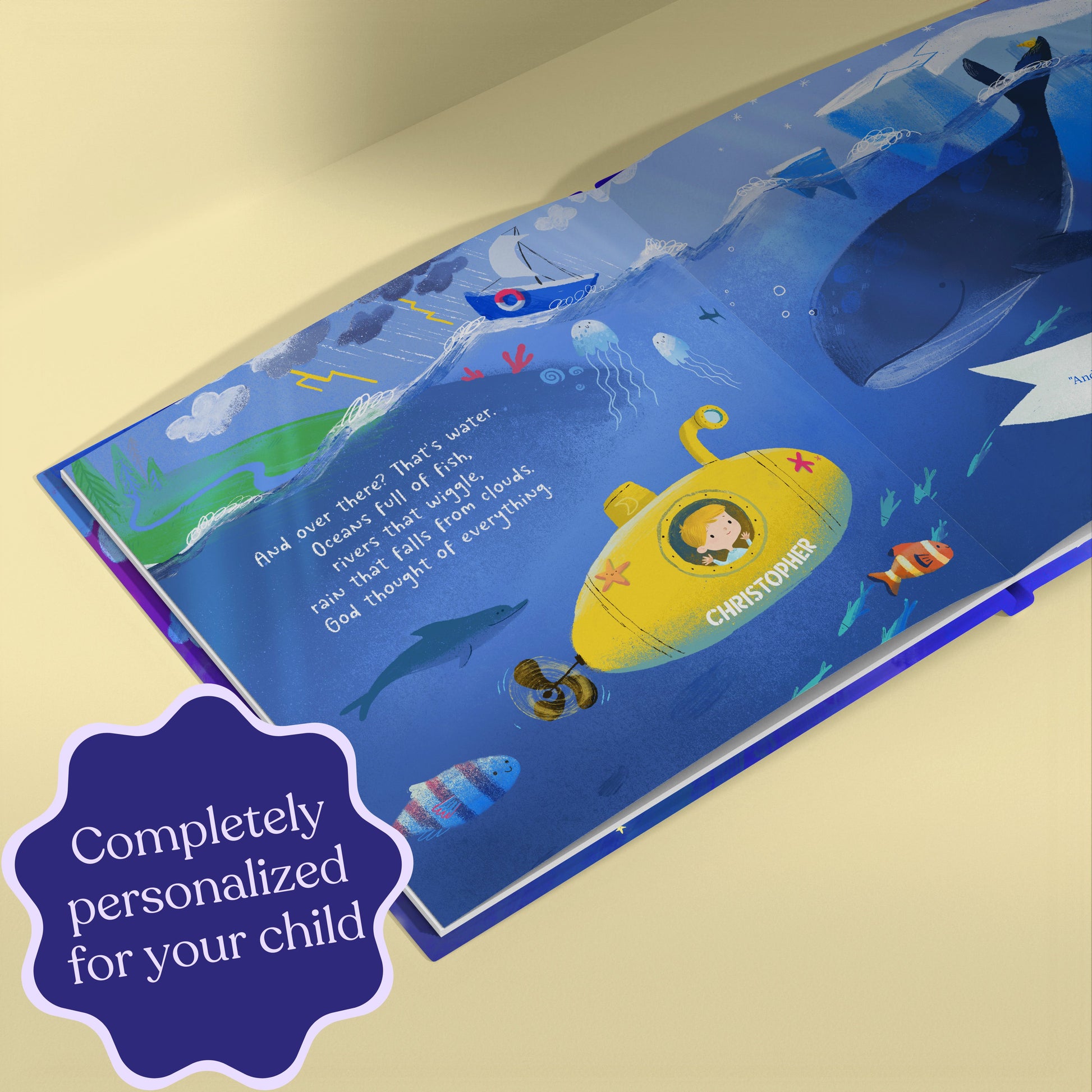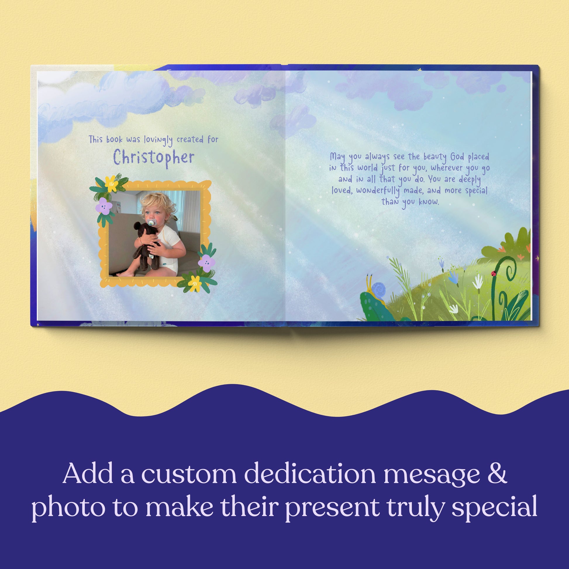 This personalized picture book walks your child through the wonders of creation—with their name woven throughout and scripture on every page. It's a gentle reminder that they were made on purpose and belong right here. A heartfelt keepsake for baptisms, baby showers, or any moment worth marking with meaning.