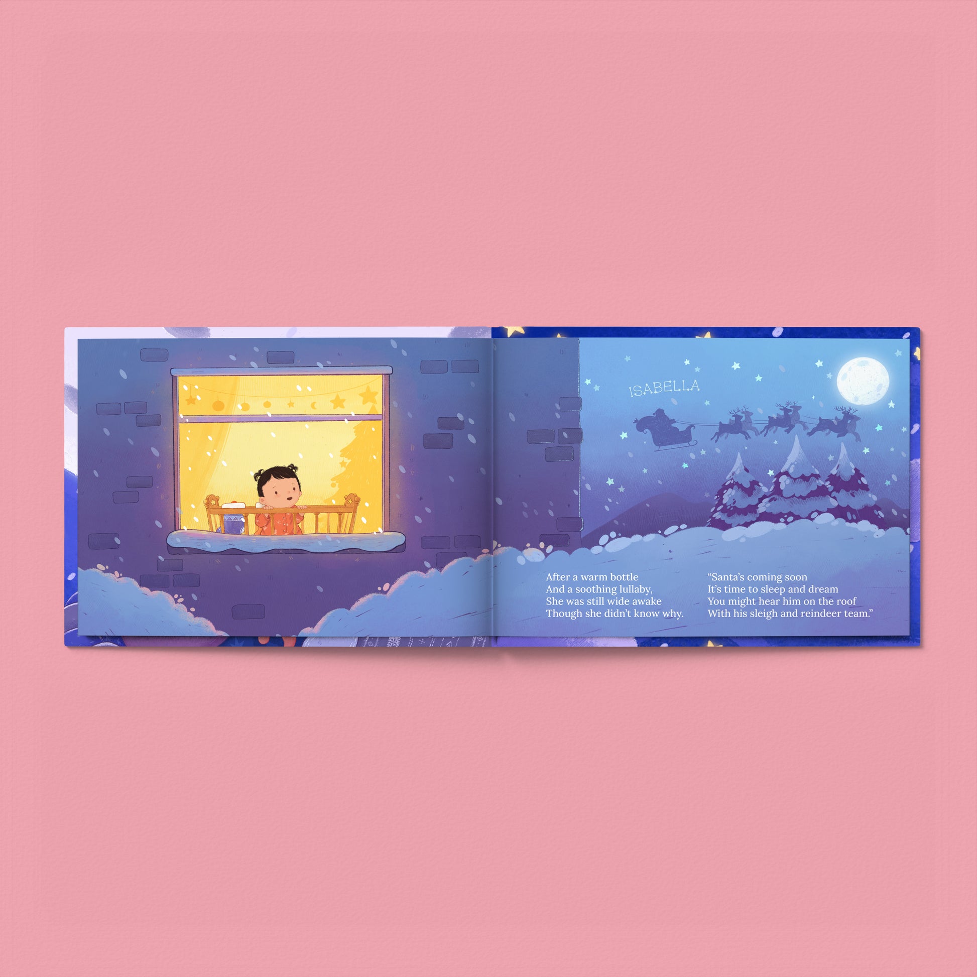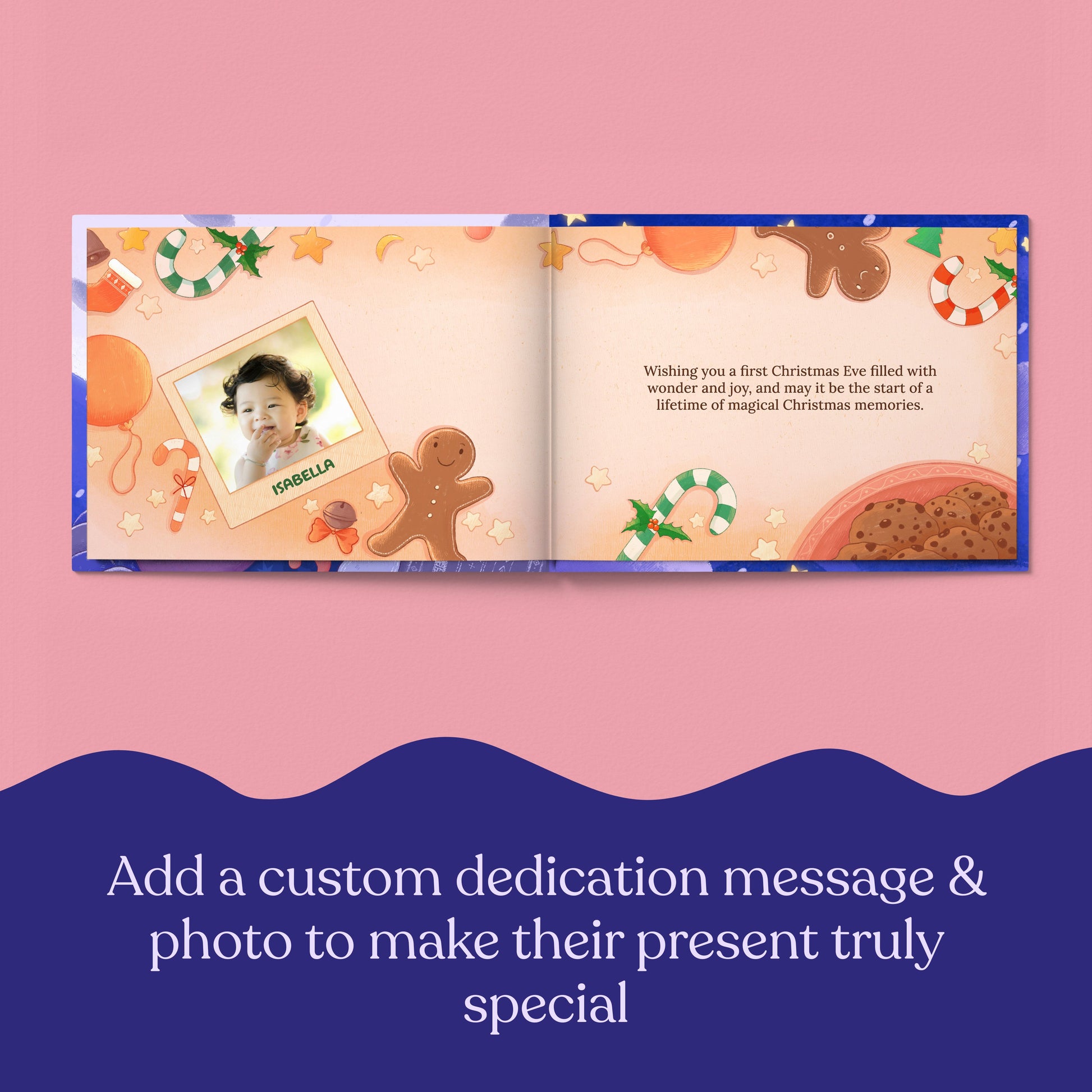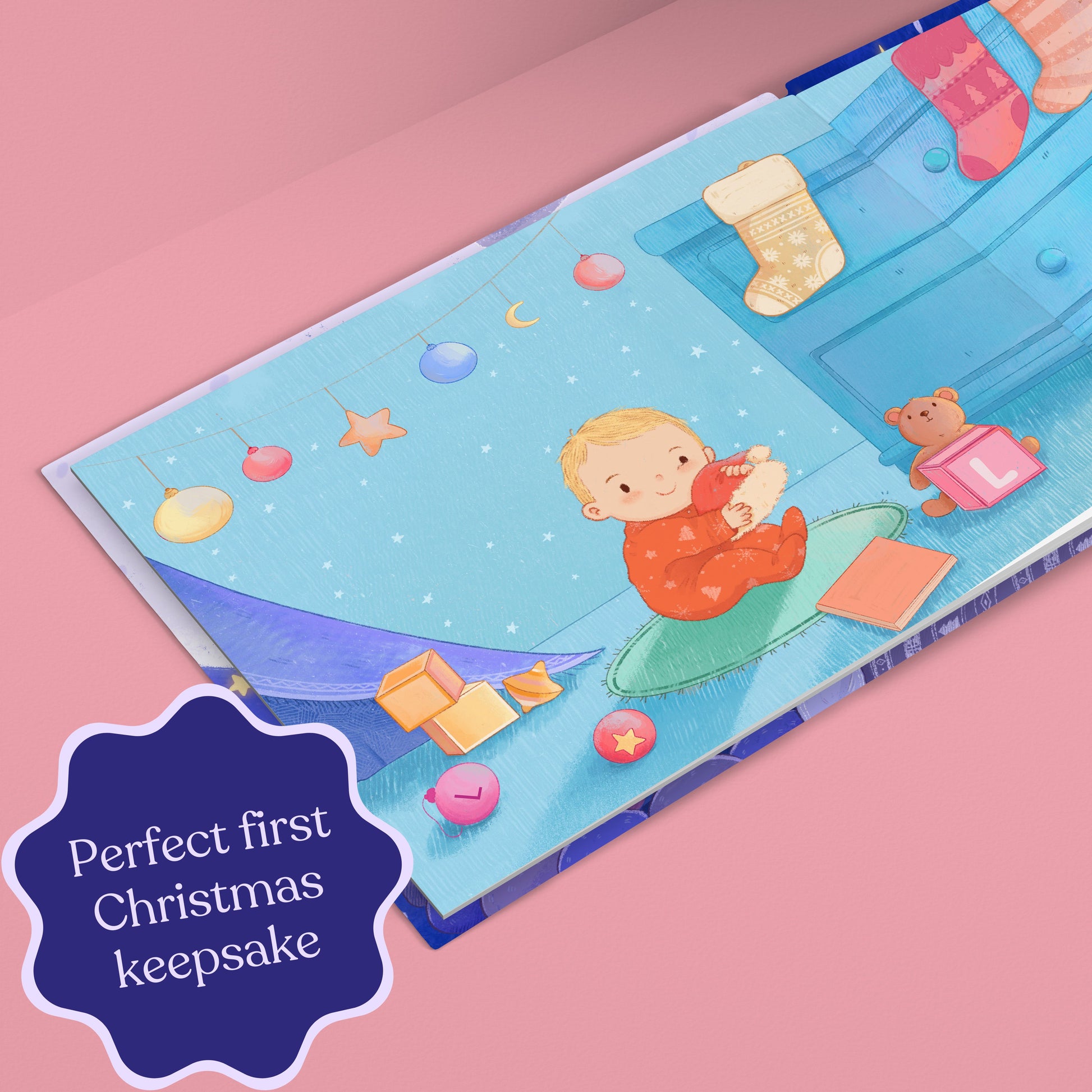 A cozy story starring your child will memorialize their first Christmas with you in an extra special way. With all the familiar magic of Christmas, your baby will fall in love with the gorgeous illustrations and establish their love for this time of year. Personalize it with their name and cute looks to treasure this keepsake this holiday and many more to come!
