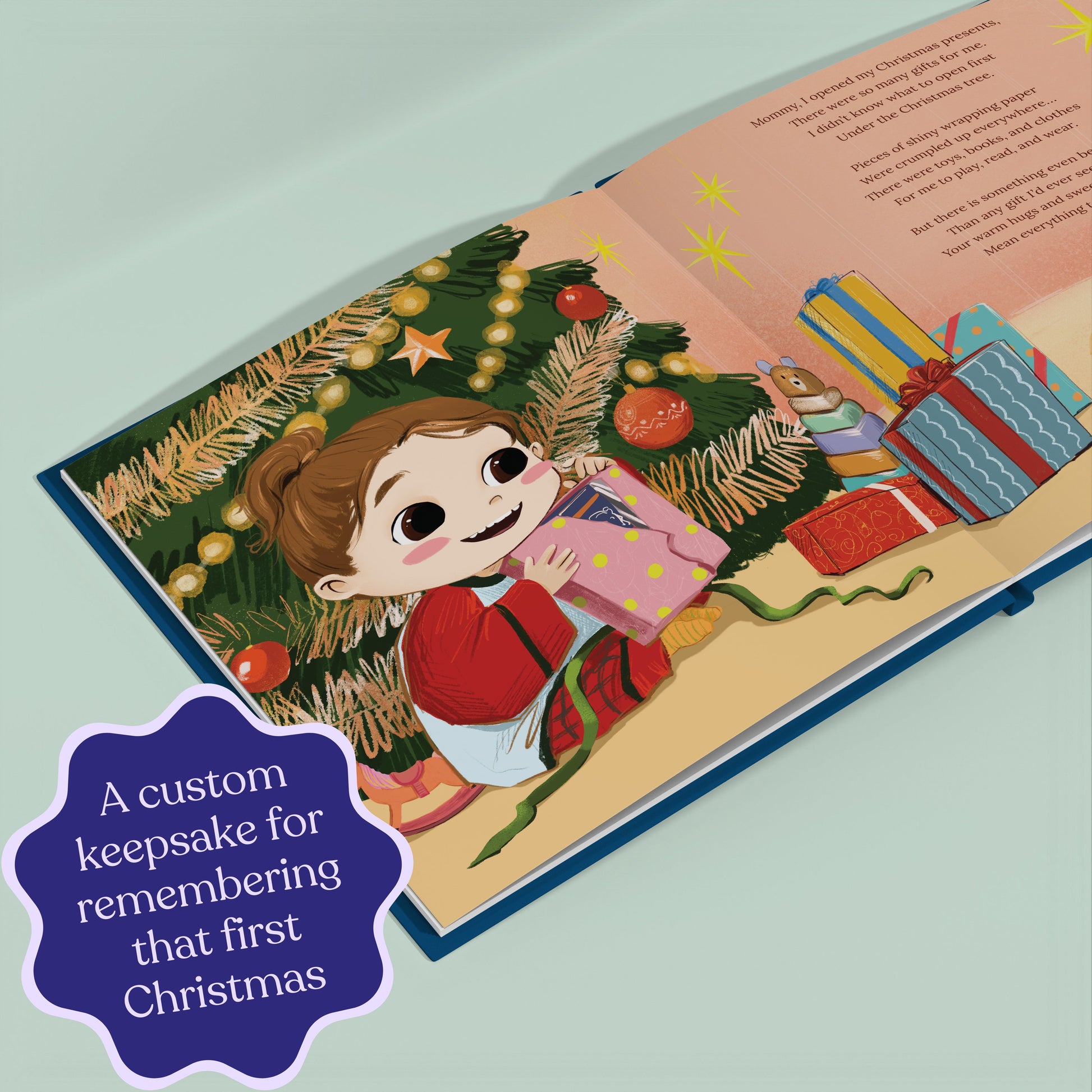 There’s nothing quite like your very first Christmas as a family. Every twinkling light feels a little brighter, every carol a little sweeter, and every cuddle a little warmer. This personalized keepsake captures that once-in-a-lifetime magic. The wonder of seeing Christmas through your child’s eyes.